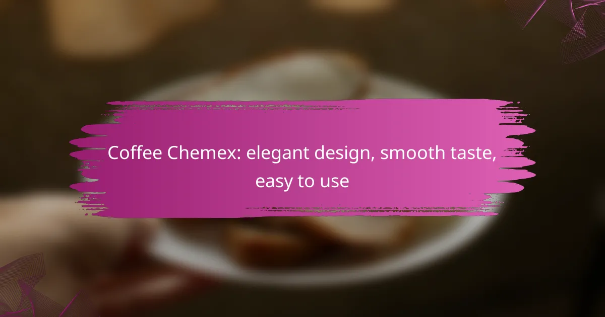 The Chemex coffee maker combines elegant design with a straightforward brewing process, resulting in a smooth and flavorful cup of coffee. Its unique paper filter enhances flavor clarity while minimizing bitterness, making it a favorite among coffee enthusiasts. With various models available, the Chemex caters to diverse brewing preferences while ensuring ease of use and maintenance.